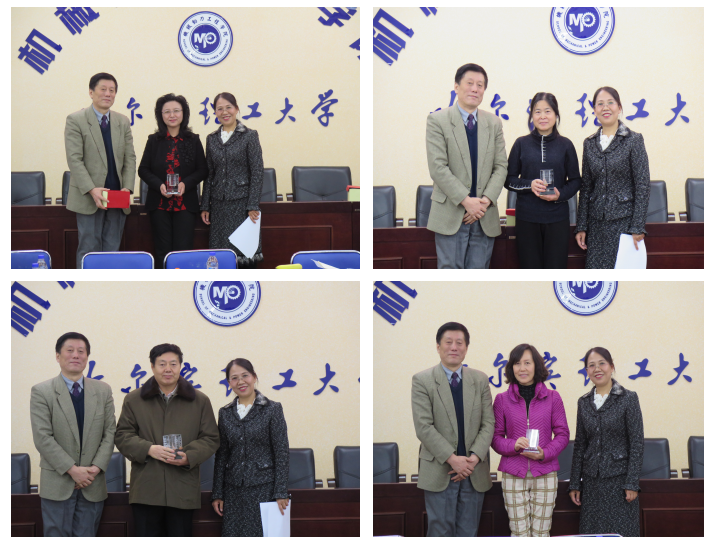 邓彩霞书记代表机械学院领导班子深切表达了学院对荣退教师和已转岗的上一届院领导的感谢和祝福之情,并为每一位荣退教师和转岗领导根据个人特点题藏头诗赞颂他们作风严谨、教书育人、无私奉献等精神。刘献礼院长代表学院向荣退教师和转岗领导赠送带有校训、院训、院徽和藏头诗的纪念笔筒。邓书记在激动之余,还亲自朗诵和释义刻在笔筒上的原创藏头诗: