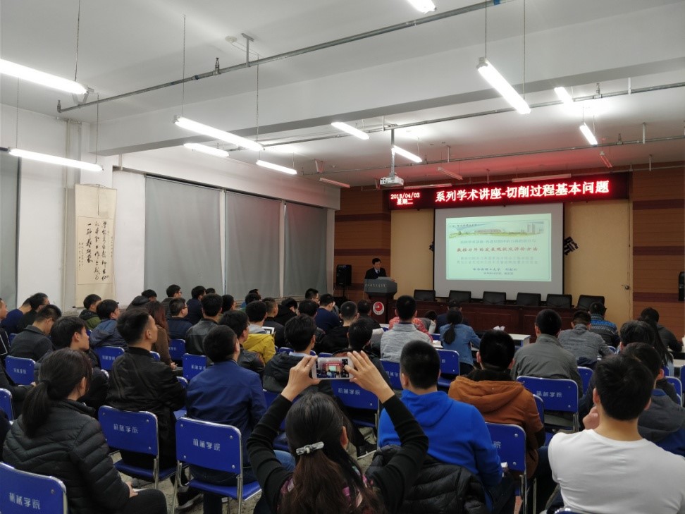 第二期讲座于2018年4月3日由本次系列活动的发起者机械动力工程学院院长刘献礼教授呈现。刘献礼教授作为我国切削领域内的知名专家,目前担任高效切削及刀具国家地方联合实验室主任、全国高效金属切削研究理事会会长、黑龙江省刀具技术协会理事长等校内外兼职,充分发挥了学科带头人的作用,为提高我校切削技术的社会声誉做出了突出贡献。刘献礼教授利用精心准备的热场视频,生动演示现代刀具切削的全过程,切入到“先进切削刀具的设计与评价”主题讲座,激发了研究生们的好奇心和求知欲。他旁征博引,巧妙穿插各种典型切削案例,生动形象地阐述了数控刀具的发展现状和评价方法,包括刀具发展历史中的几次变革性的材料、结构和涂层的创新。在讲解基础概念的同时,结合具体行业背景阐述了当今刀具产品在中国制造中的重要地位,并介绍了我校先进切削实验室的系列研究成果。讲座在同学们热烈的掌声中圆满结束。