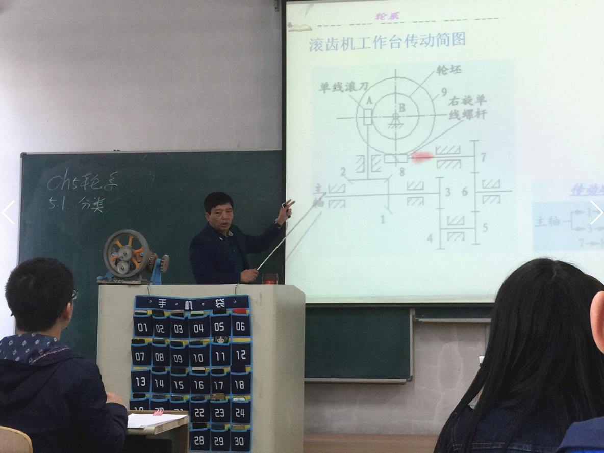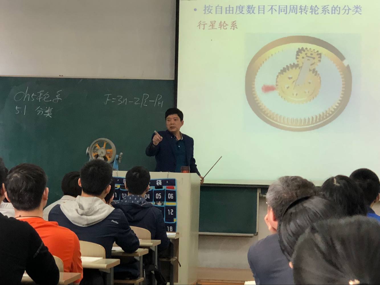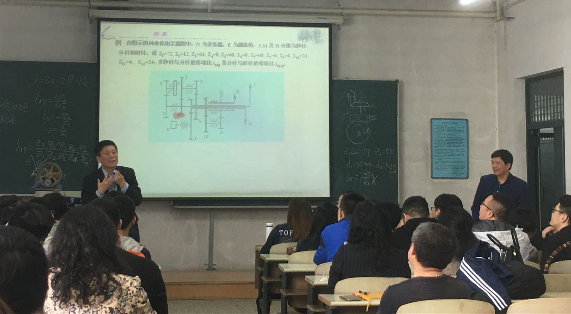 教学名师向敬忠教授示范了省级精品课《机械设计》的“轮系传动比计算”讲授内容。向老师从现代高科技的工程应用导入,通过轮系功用和特点,引出轮系及其分类;通过一对齿轮啮合时传动比的计算,深入浅出地引出一系列齿轮传动时传动比计算的方法;将直观的实物教具与图文并茂、动画演示的多媒体辅助教学有机结合,板书推算严谨,充分调动了学生学习的积极性和主动性。他饱满的精神、抑扬顿挫的声音、慷慨激昂的话语,富有激情的讲授,激发了学生们的学习热情,也感染了在场的每一位教师。