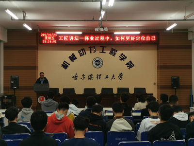 2019年9月20日晚6时,我校机械动力工程学院99级机械制造及其自动化专业优秀校友,宜讯汽车装备(上海)有限公司总经理李宝明在学院党委副书记副院长杨芳的邀请下,于新主楼C305为我院学生举办“择业过程中,如何更好定位自己”为主题的工匠讲坛讲座,学院党委副书记副院长杨芳、辅导员李龙文以及机械学院各年级优秀学生参加了本次讲座。