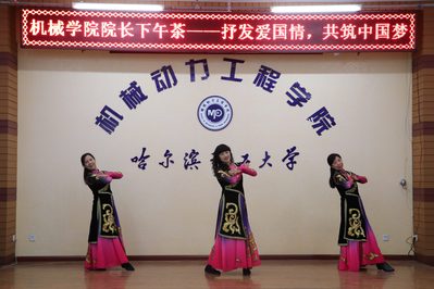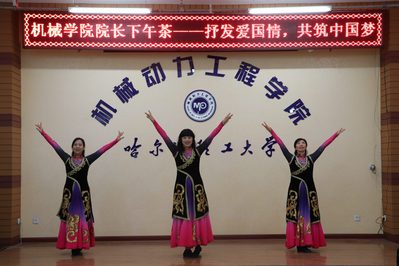 学院师生为表达对少数民族同学的关注与关怀,精心准备了文艺节目,让少数民族同学欣赏了流行歌曲串烧、小提琴演奏《梁祝》以及学院女教师翩翩舞蹈队的队长赵彦玲教授、教练张洪鑫和院党委书记邓彩霞共同表演的舞蹈《我爱你中国》。老师们精彩的表演将活动推向了高潮,现场掌声不断,增强了少数民族学生的爱国情怀。