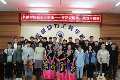 机械学院领导班子坚持立德树人根本任务,以学生为中心,不断提升育人质量,努力培养德智体美全面发展的社会主义建设者和接班人。为了深入基层,贴近学生,关心学生成长成才,学院自2014年9月启动首期院长下午茶活动以来,已成功举办了十期院长下午茶活动。院长带头,院班子成员积极参与,形式多样的院长下午茶活动深受学生欢迎。为了做好少数民族学生的思想教育和服务工作,培养和造就思想过硬、素质优良、热爱祖国的优秀少数民族人才,落实好“不忘初心、牢记使命”主题教育工作。机械学院于2019年11月23日在新教学主楼C305开展了以“抒发爱国情,共筑中国梦”为主题的第十期院长下午茶活动。院党委书记邓彩霞、院党委副书记杨芳、2019级全体少数民族学生出席本次活动。