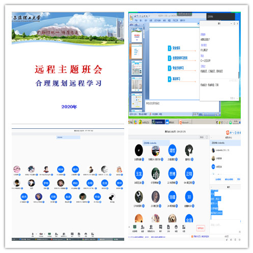 学院全体辅导员均按时召开网络年级大会与主题班团会,督促学生做好各网络教学平台的注册认证及准备事宜,明确线上教学期间的各项纪律规章,积极引导全体学生做到思想上高度重视、行动上积极配合,制定好特殊时期的学业规划,自觉与任课教师共同维护运营好“空中课堂”,提高网络学习质量和效率。全体辅导员在开学首周与任课教师一同深入线上教学第一线,和学生们共同听课学习,每天对学生在网络教学中遇到的各项问题和困难进行排查征询,及时发现问题、协调解决问题、督促学生按时参加网络教学,完成学习任务,并为网络条件不佳,上课存在困难的学生提出帮助指导建议及补课方案,确保所有学生在线上学习期间不担心、不掉队。