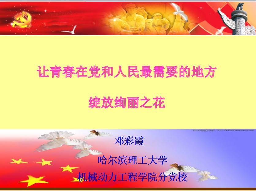 首先,机械动力工程学院党委书记邓彩霞以“让青春在党和人民最需要的地方绽放绚丽之花”为题,从三部分为毕业生党员讲授毕业前的最后一堂党课。党课第一部分“党旗高飘扬,全民战疫情”,通过对党中央抗击疫情期间的重要举措的讲解,增强了毕业生党员在疫情防控工作中率先垂范、守牢防控成果的意识,并提醒党员们要时刻牢记人民利益高于一切。第二部分“龙江四精神,传承和弘扬”,通过对东北抗联精神、北大荒精神、大庆精神和铁人精神的讲解,强调党员要始终坚定马克思主义信仰和共产主义信念,弘扬爱国主义精神,发扬艰苦奋斗精神,踏实做人、勤奋做事;第三部分“党章记心中,责任践于行”,要求党员严格遵守党章规定,坚定理想信念,坚持实事求是,担当有为,时刻牢记总书记对新时代青年提出的六点要求。党课最后以“爱国、奋斗、奉献”勉励党员们要志存高远,知行合一,甘于奉献,在实现中国梦的奋进中走出绚丽人生。