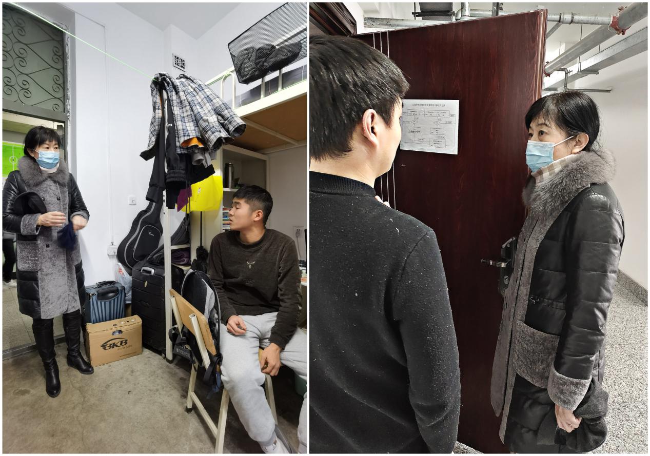根据今冬新冠肺炎疫情防控形势,为确保广大师生的生命安全和身体健康,本着“生命至上,安全第一”的原则,我校决定提前放假。12月18日,为确保我院疫情防控期间学生顺利离校、安全返乡,机械学院党委副书记杨芳及全体辅导员走访学生寝室。