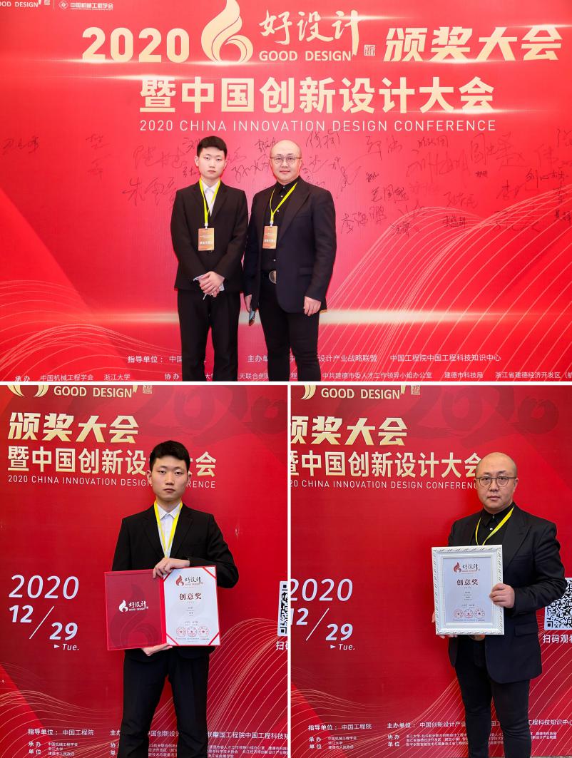 12月28日,指导教师沈瞳与学生房浩南在2020中国创新设计大会上接受了院士和专家对作品总评与授奖环节,并获得好设计创意奖的荣誉。好设计创意奖主要面向全国高校学生、教师的奖项,本次我校参赛作品最终跻身全国高校1/40强且作为黑龙江省唯一获奖作品,凸显了我校工业设计专业育人水平。