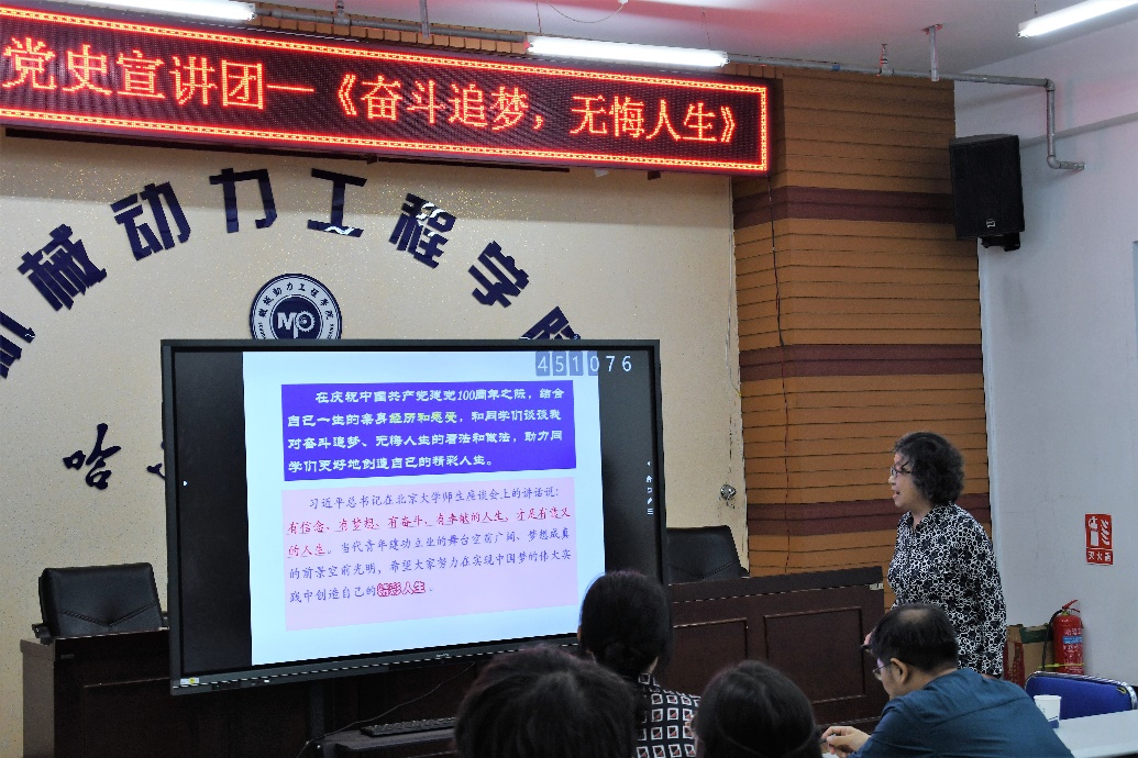 为贯彻“学党史、强信念、跟党走”党史学习教育相关精神,落实学校毕业季系列教育活动实施要求,切实加强毕业生理想信念教育,机械动力工程学院于2021年6月15日晚18时在学院多功能厅举办了以“奋斗追梦,无悔人生”为主题的党课宣讲会。本次党课宣讲会学院特别邀请到哈尔滨理工大学党史学习教育“五老”宣讲团成员、省级优秀教师于惠力老师为2021届本科毕业生党员授课。校离退休管理服务中心主任张军、副主任原海滨,机械动力工程学院党委副书记杨芳、学院毕业生辅导员及全体毕业生党员共同参加了本次宣讲会,宣讲会由杨芳副书记主持。