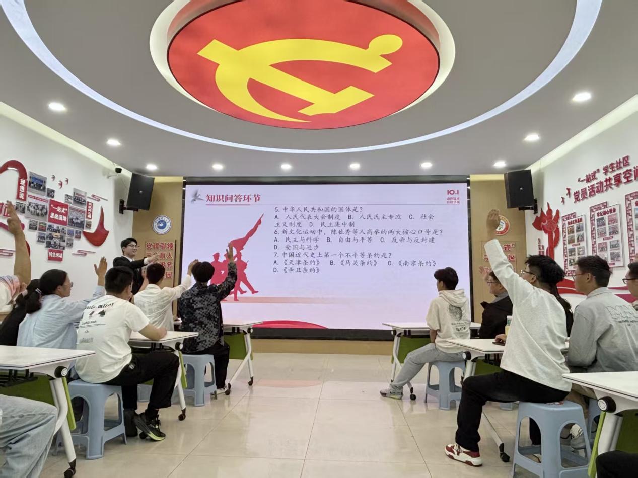 在“学国庆知识,燃爱国情怀”知识问答活动中,工作人员抛出的20个问题,涵盖了中华历史、国家发展及成就等多方面内容。大家或凝神思索,或快速抢答,每一次正确回答都赢得阵阵掌声。这不仅是知识的比拼,更是对同学们爱国情怀的一次检验,让大家在答题中,深切感受到祖国76年来的辉煌历程与伟大成就。