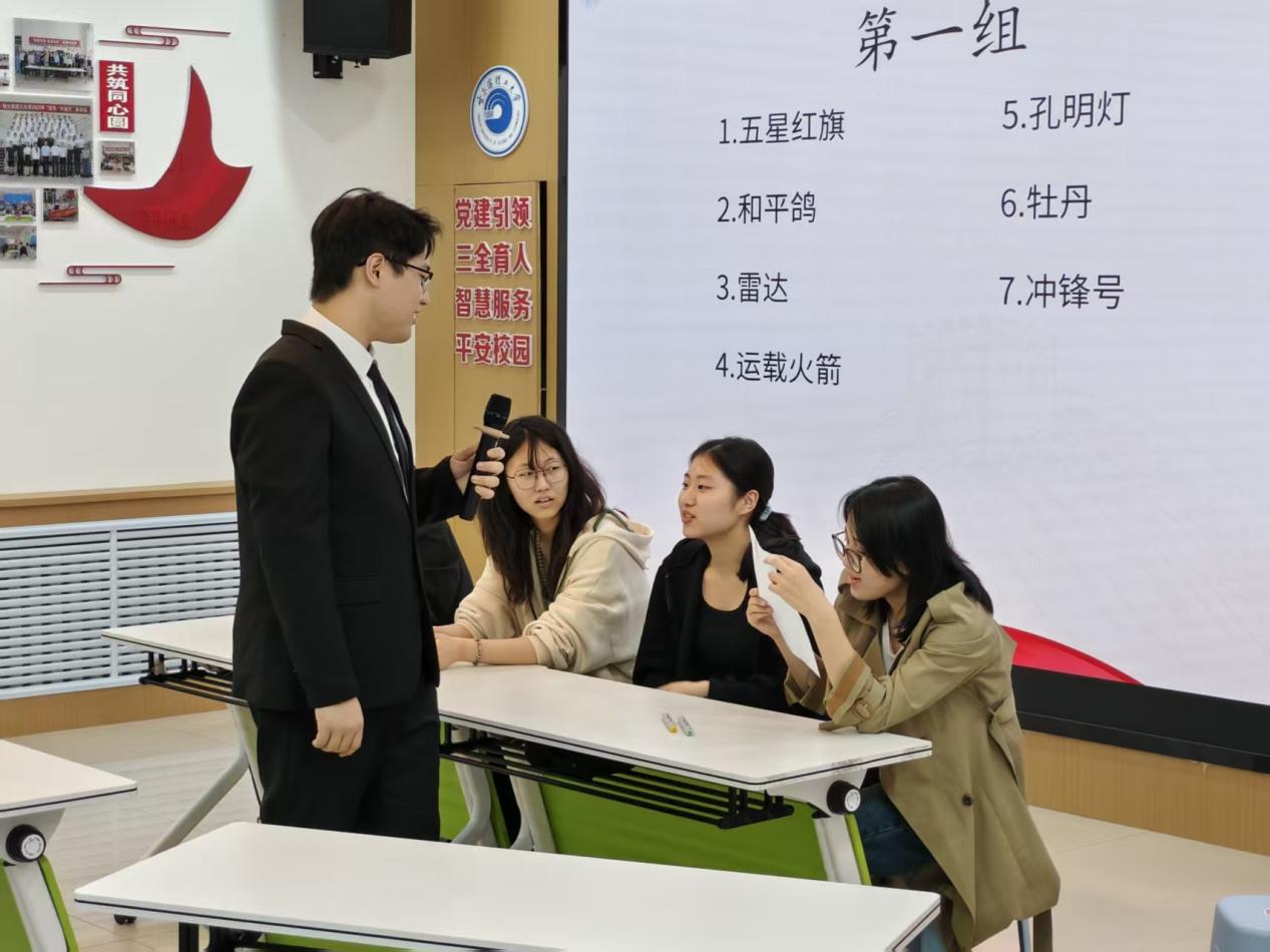 “‘画’说家国事,‘猜’乐迎国庆”你画我猜活动充满了欢声笑语与创意火花。同学们默契配合,凭借对家国元素的理解,在白纸上描绘出一个个生动的图案,组员们仔细观察、积极联想。当关键词“天安门”“五星红旗”“国泰民安”等被成功猜出时,小组内的欢呼与周围的喝彩交织在一起,家国情怀在这一“画”一“猜”的互动中,悄然在同学们心中扎根、升华。